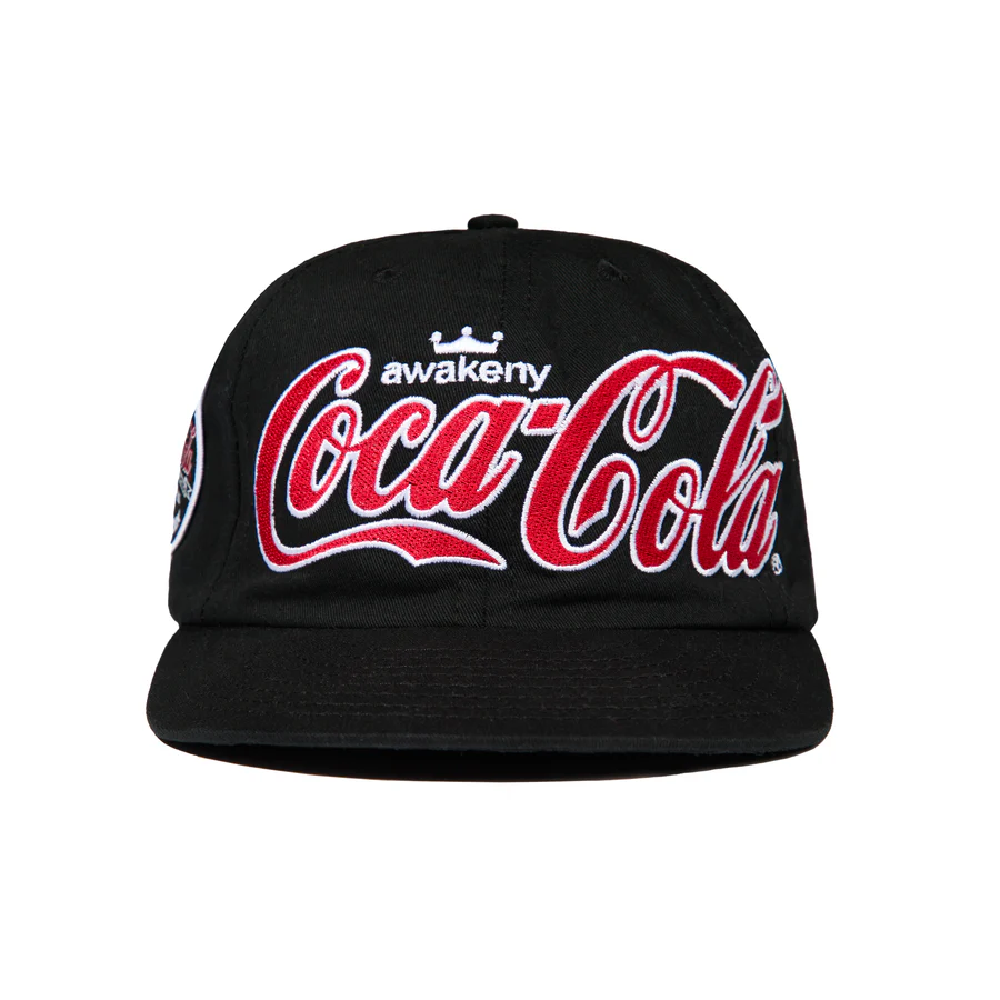 A classic fitted featuring bold embroidered Coca-Cola and Awake NY graphics.